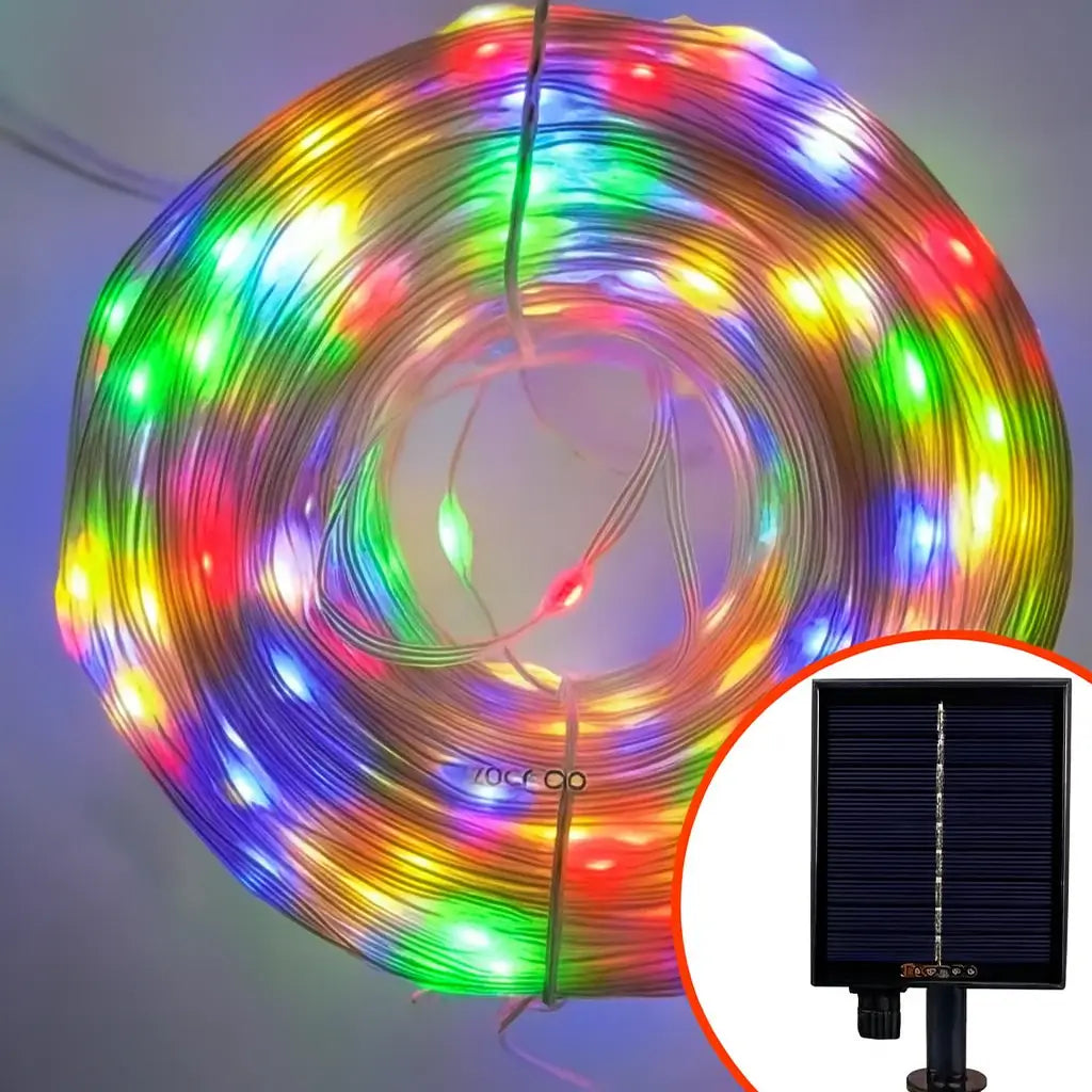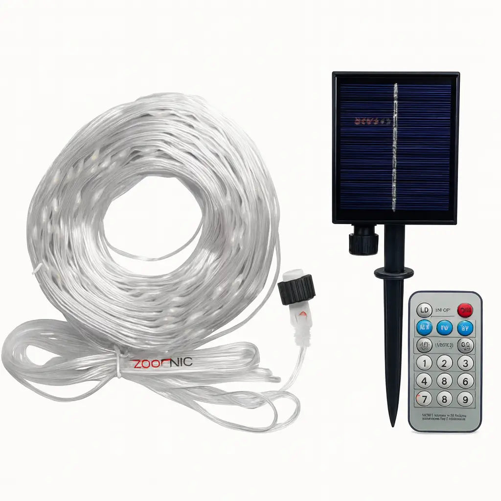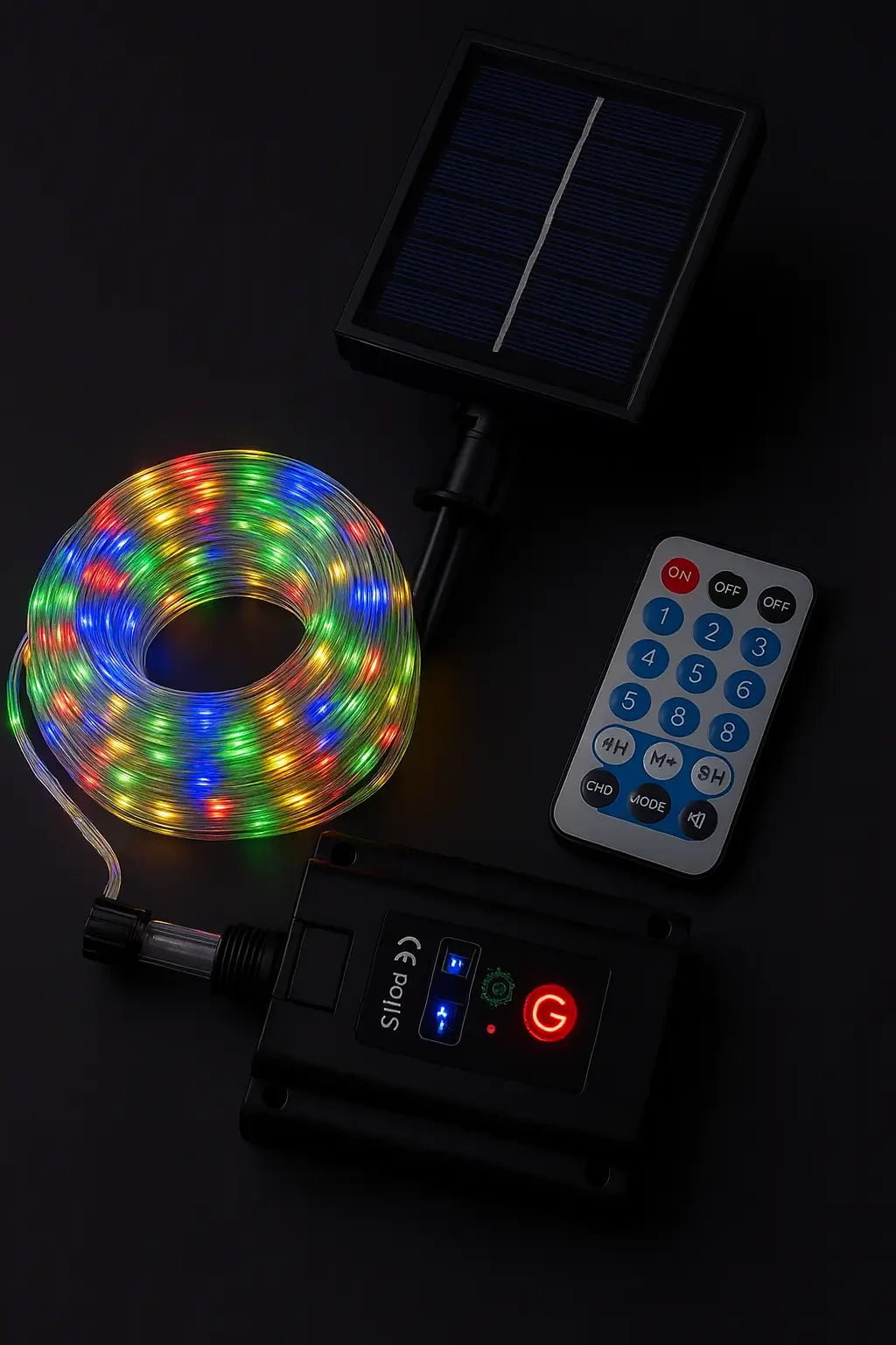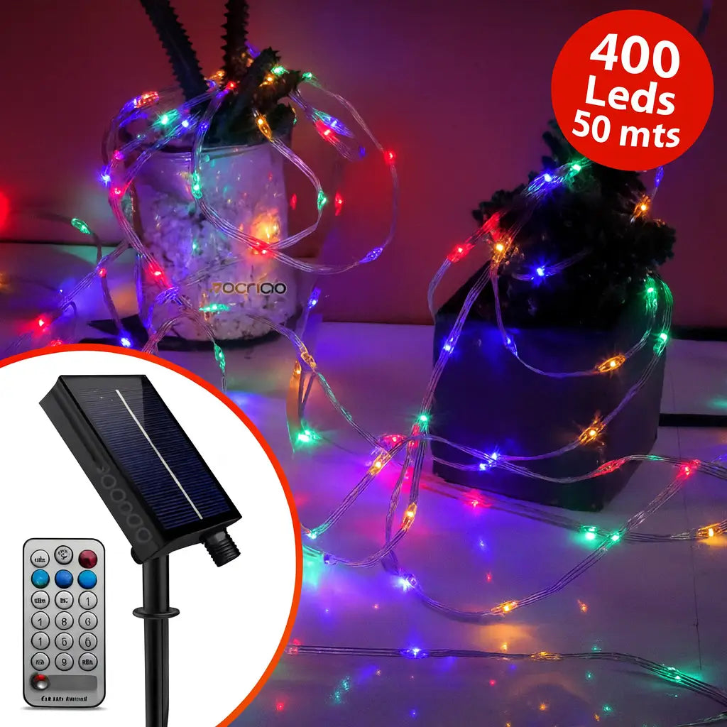Disponemos de guirnaldas solares de 20 metros y 50 metros, ideales para decorar desde espacios pequeños hasta fachadas completas o jardines amplios.